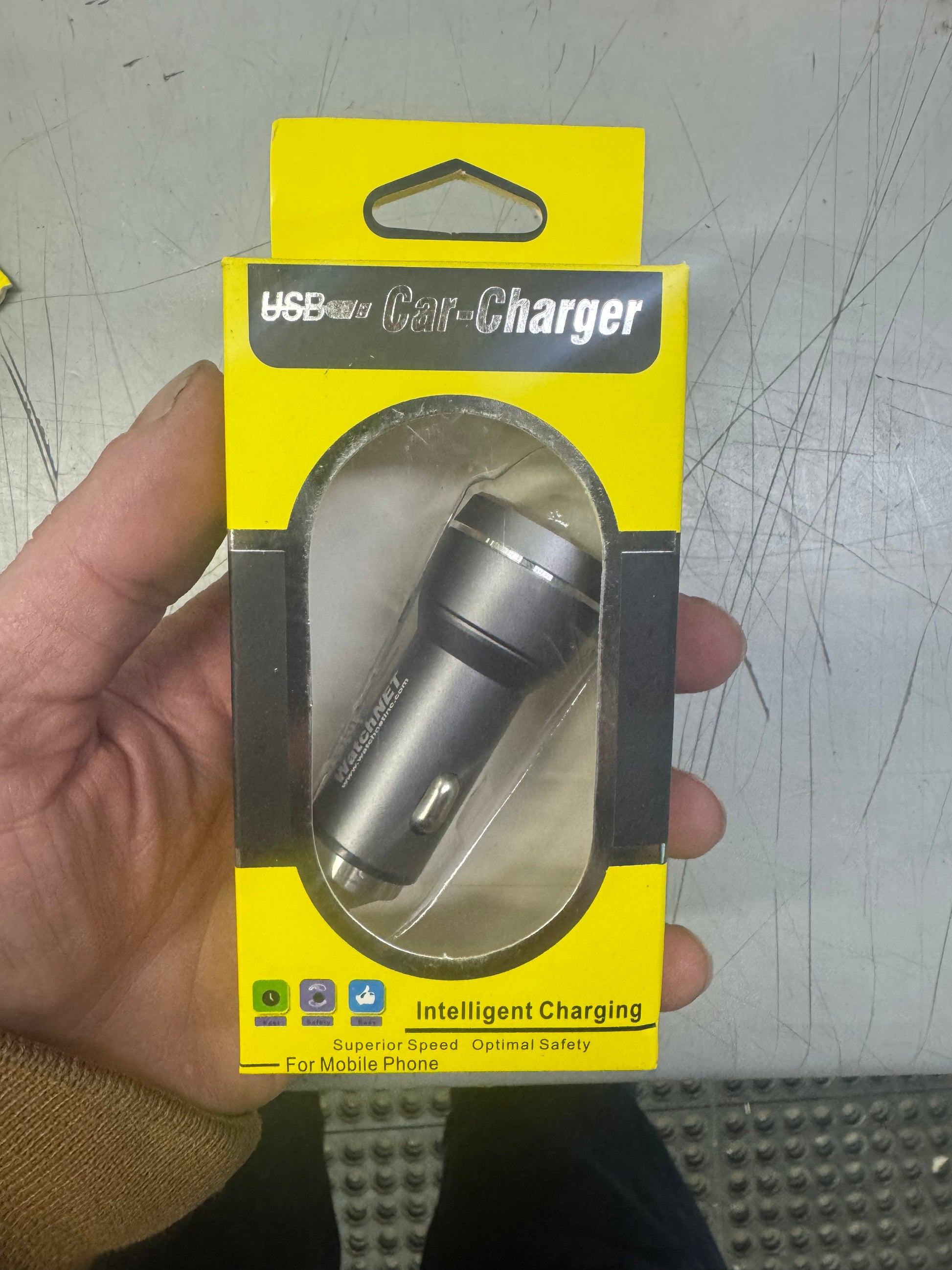 A 1A and 2.1A usb car charger. Found in a security company dumpster along with a bunch of other overstock product they tossed.